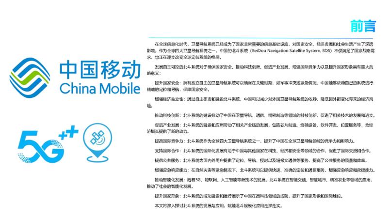 下载→《中国移动5G+北斗系统发展与应用白皮书》