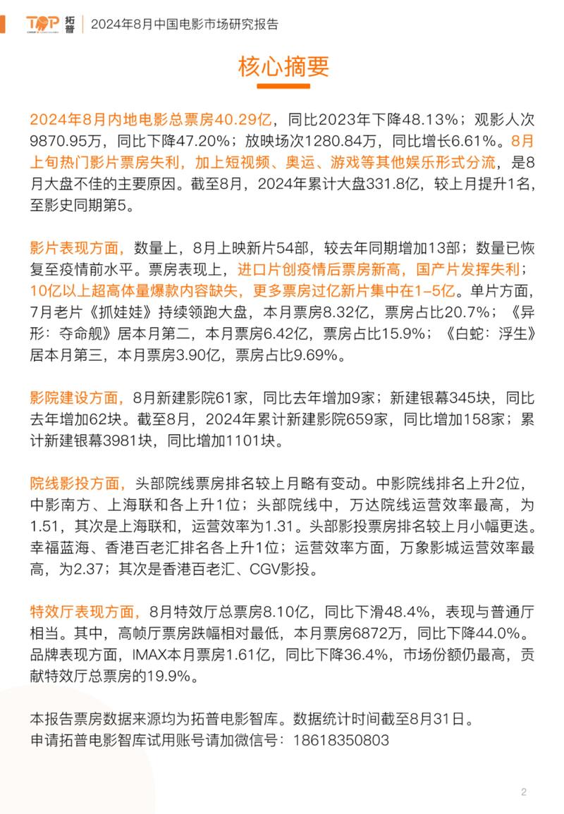 下载→《2024年8月中国电影市场研究报告》