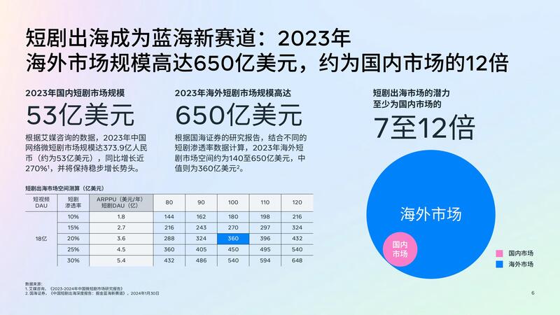 【流媒体网】摘要:2023年短剧海外市场规模高达650亿美元,约为国内市场的12倍。(文末附有报告全文链接,欢迎今日流媒体VIP会员下载阅读!)