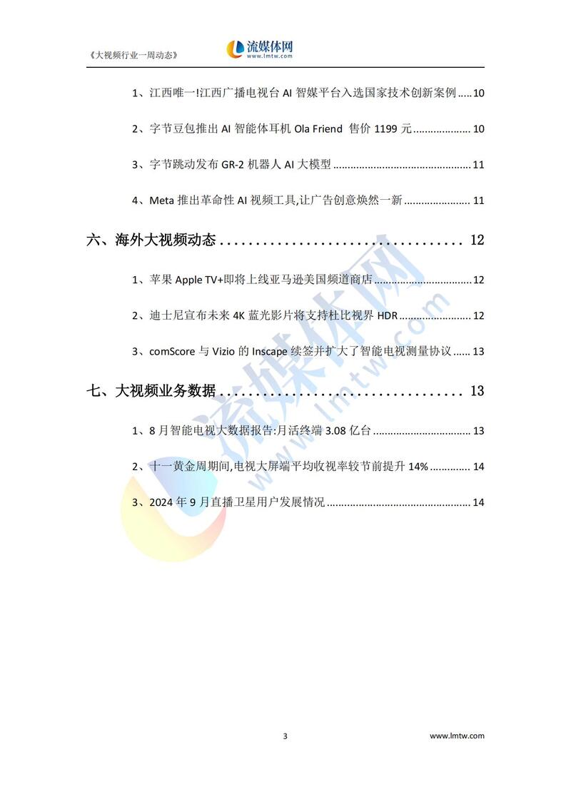 【下载】大视频行业一周市场动态汇总(2024.10.05-10.11)