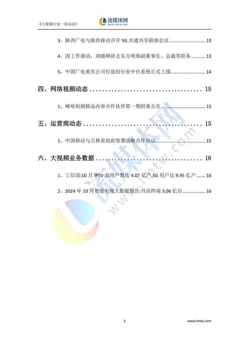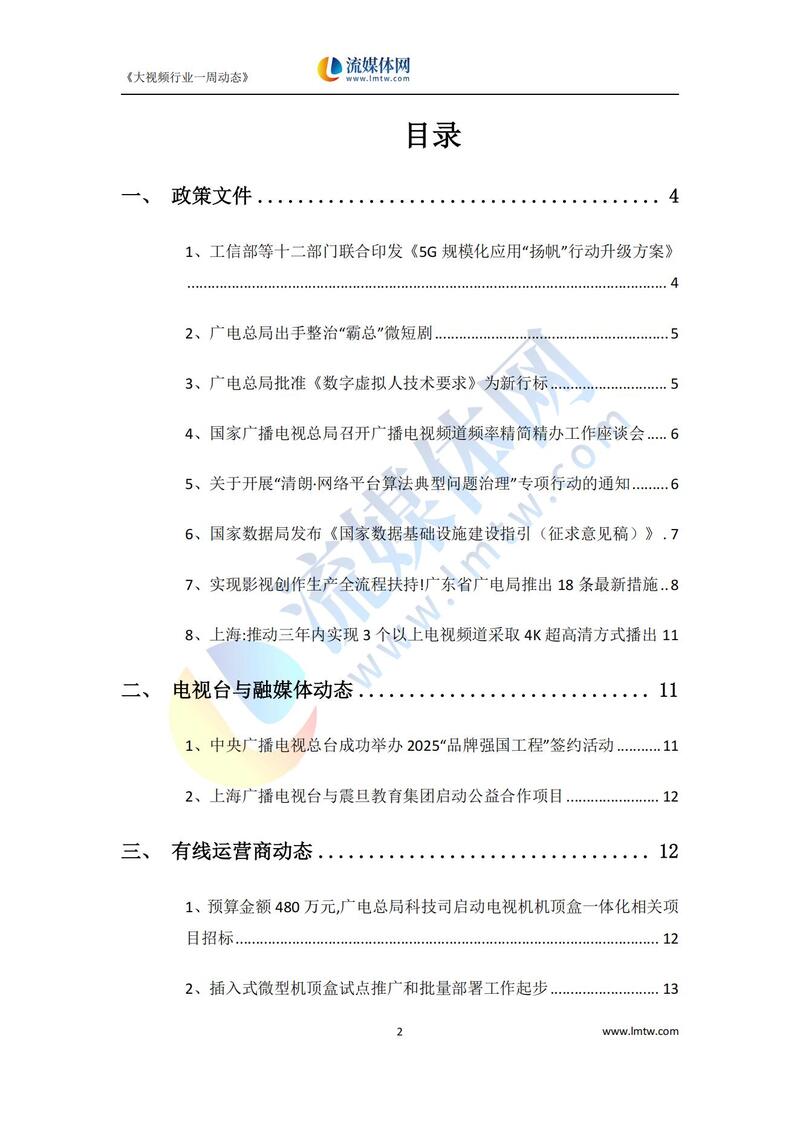 【流媒体网】摘要:工信部等十二部门联合印发《5G规模化应用“扬帆"行动升级方案》、广电总局出手整治“霸总"微短剧......