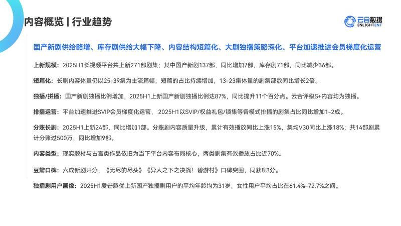 【流媒体网】摘要:国产新剧供给略增、库存剧供给大幅下降、内容结构短篇化。(文末附有报告全文链接,欢迎今日流媒体VIP会员下载阅读!)