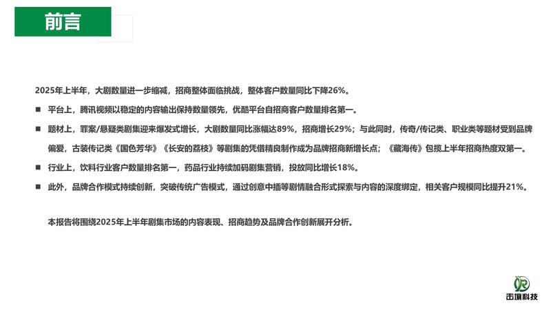 【流媒体网】摘要:2025年上半年,大剧数量进一步缩减,招商整体面临挑战。(文末附有报告全文链接,欢迎今日流媒体VIP会员下载阅读!)