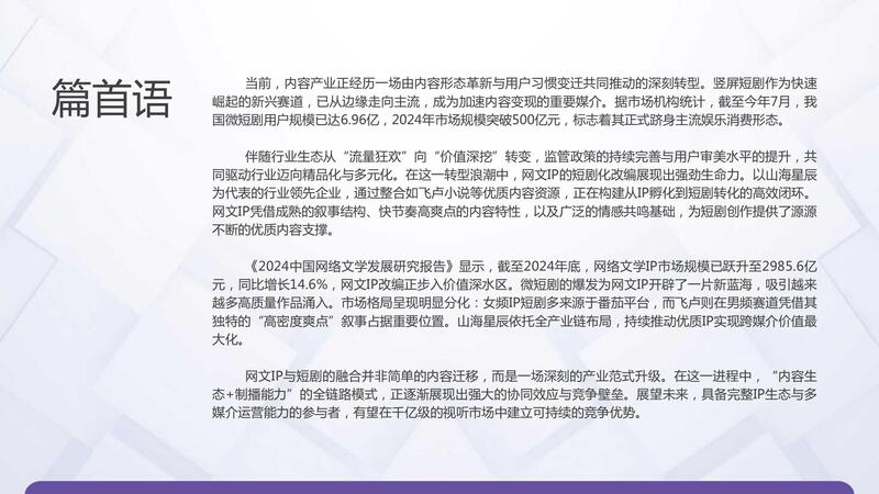 【流媒体网】摘要:网文IP与短剧的融合而是一场深刻的产业范式升级。(文末附有报告全文链接,欢迎今日流媒体VIP会员下载阅读!)