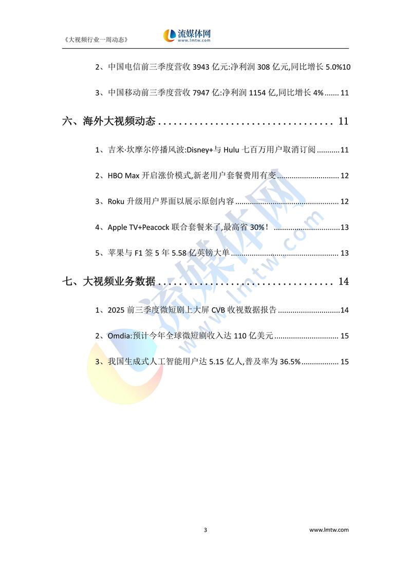 【流媒体网】摘要:广电企业相继召开三季度经营会、三大电信运营商发布前三季度业绩报告......