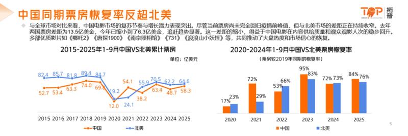 【流媒体网】摘要:中国同期票房恢复率反超北美。